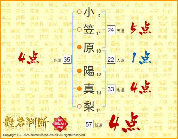 小笠原陽真梨さんの外運は35画の4点!