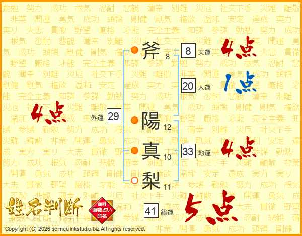 斧陽真梨さんの外運は29画の4点!