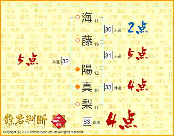 海藤陽真梨さんの総運は63画の4点!