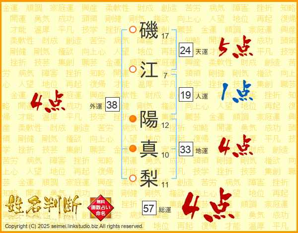 磯(17画)江(7画) 陽(12画)真(10画)梨(11画)