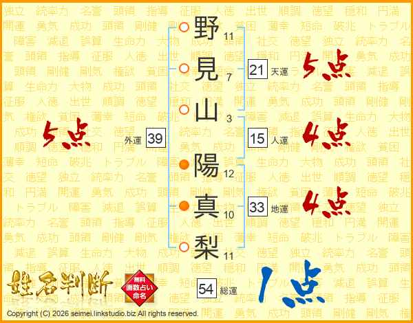 野見山陽真梨さんの外運は39画の5点!