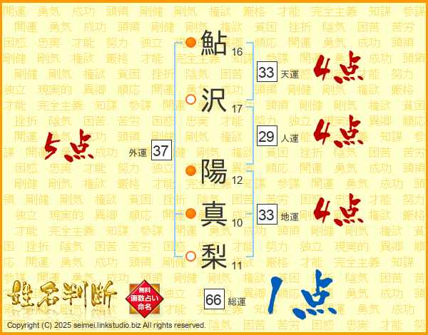 鮎沢陽真梨さんの外運は37画の5点!
