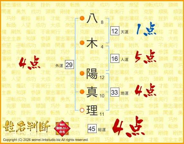 八木陽真理さんの総運は45画の4点!