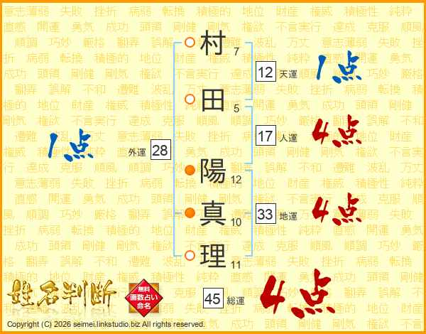 村田陽真理さんの総運は45画の4点!