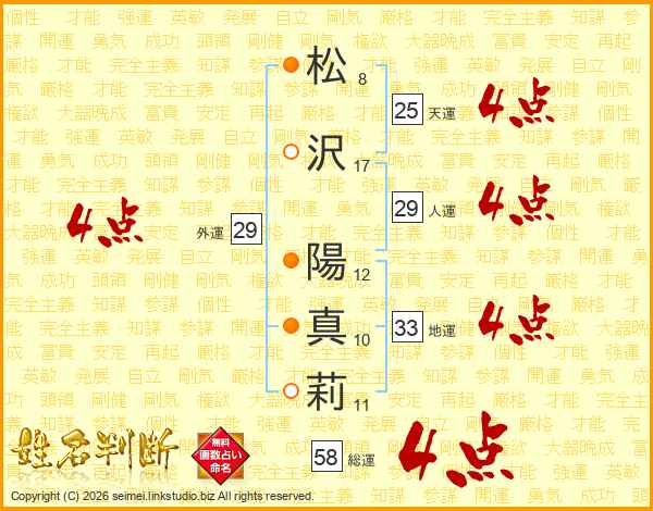 松沢陽真莉さんの総運は58画の4点!