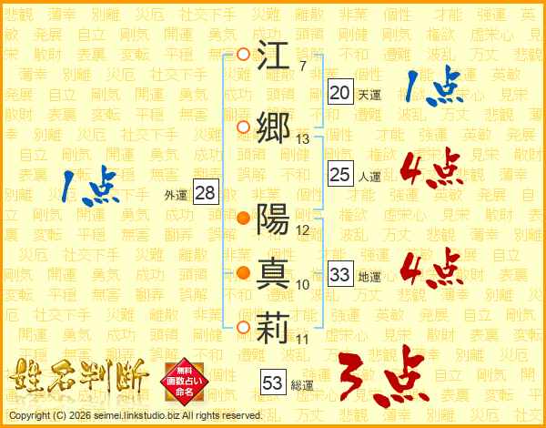 江郷陽真莉さんの総運は53画の3点!