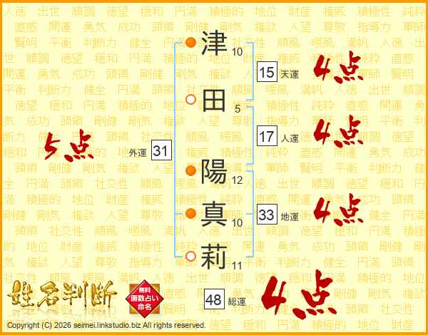 津田陽真莉さんの天運は15画の4点!