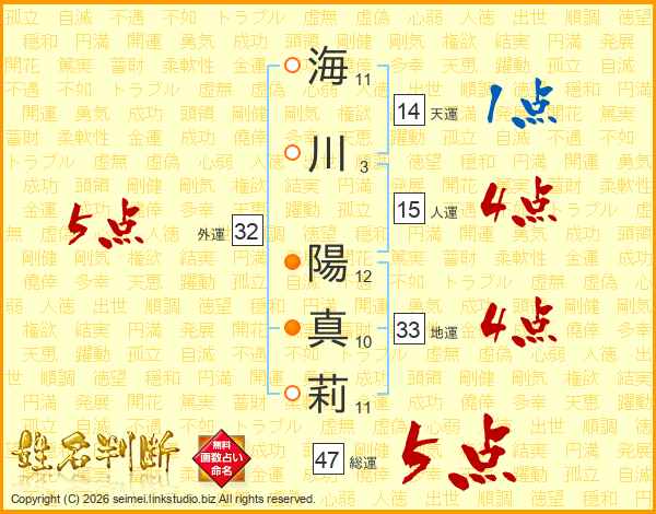 海川陽真莉さんの総運は47画の5点!