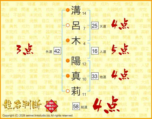 溝呂木陽真莉さんの天運は25画の4点!