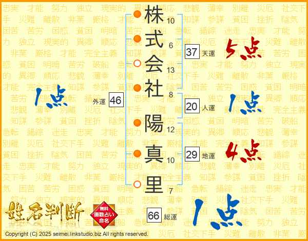 株式会社陽真里さんの総運は66画の1点!
