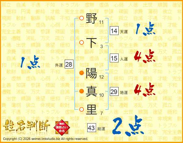 野下陽真里さんの人運は15画の4点!