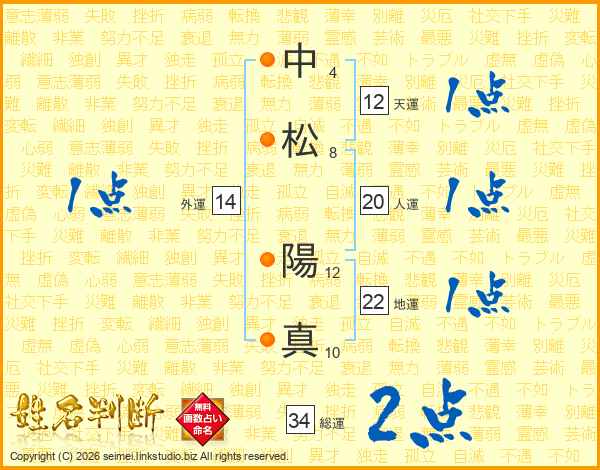 中松陽真さんの総運は34画の2点!