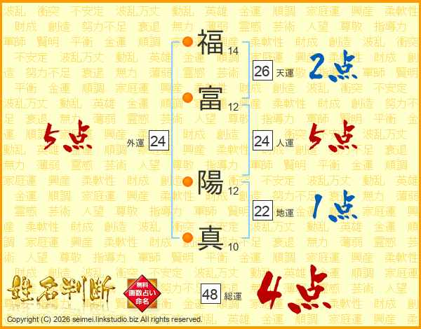 福富陽真さんの総運は48画の4点!