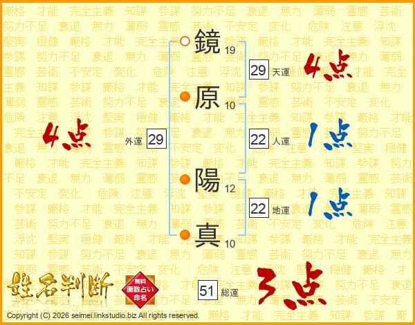鏡原陽真さんの外運は29画の4点!