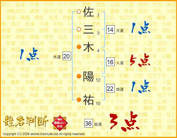 佐三木陽祐さんの天運は14画の1点!
