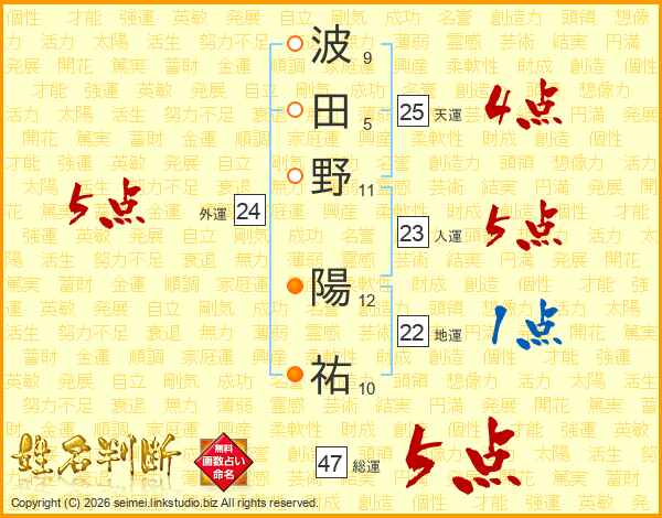 波田野陽祐さんの天運は25画の4点!