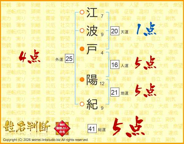 江波戸陽紀さんの総運は41画の5点!