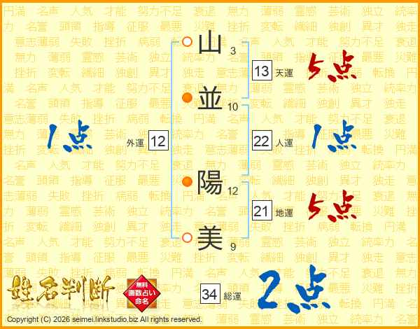 山(3画)並(10画) 陽(12画)美(9画)