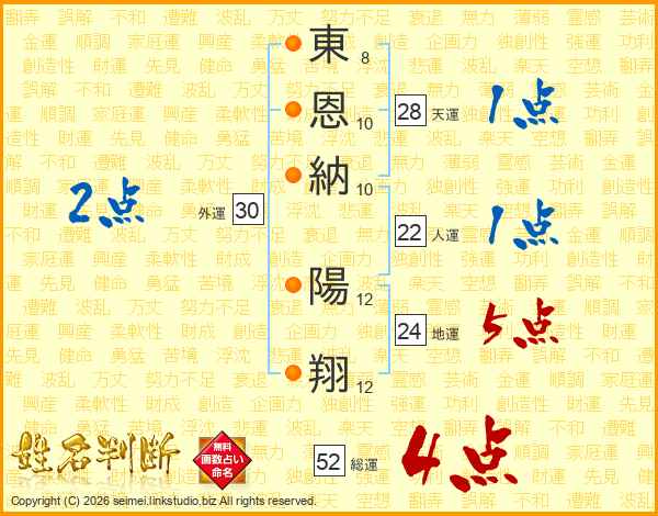 東恩納陽翔さんの総運は52画の4点!