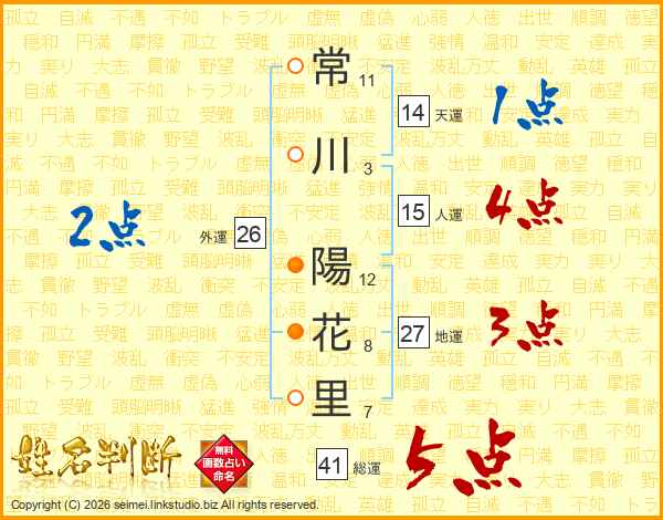 常川陽花里さんの総運は41画の5点!