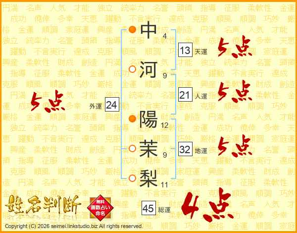 中河陽茉梨さんの総運は45画の4点!