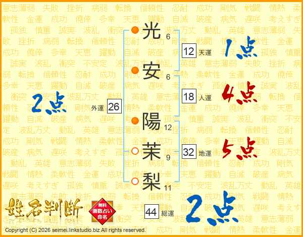 光安陽茉梨さんの外運は26画の2点!
