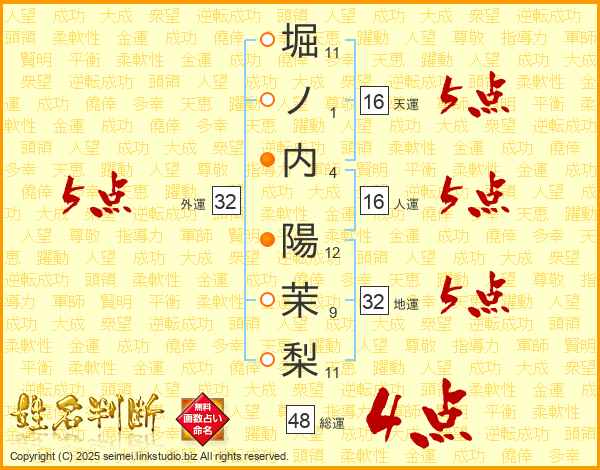 堀ノ内陽茉梨さんの外運は32画の5点!