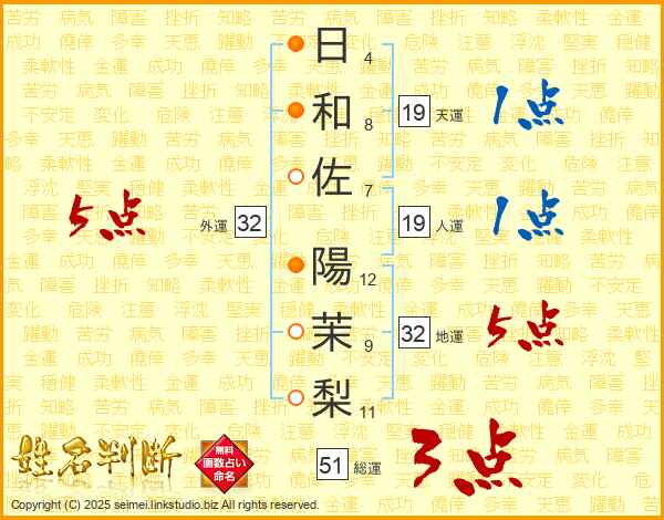 日和佐陽茉梨さんの外運は32画の5点!