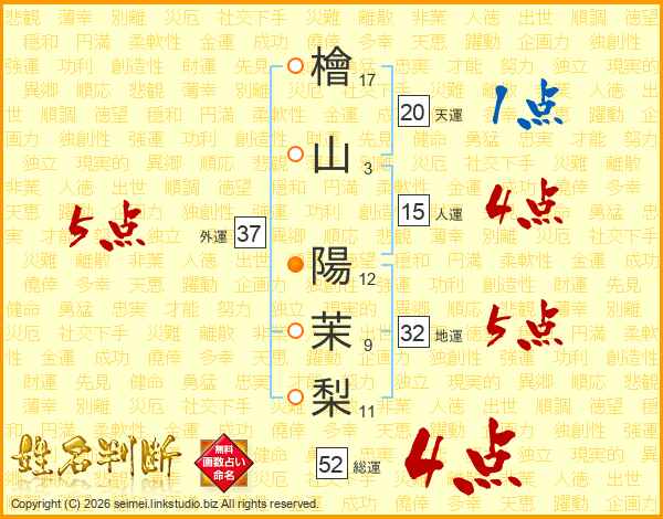 檜山陽茉梨さんの総運は52画の4点!