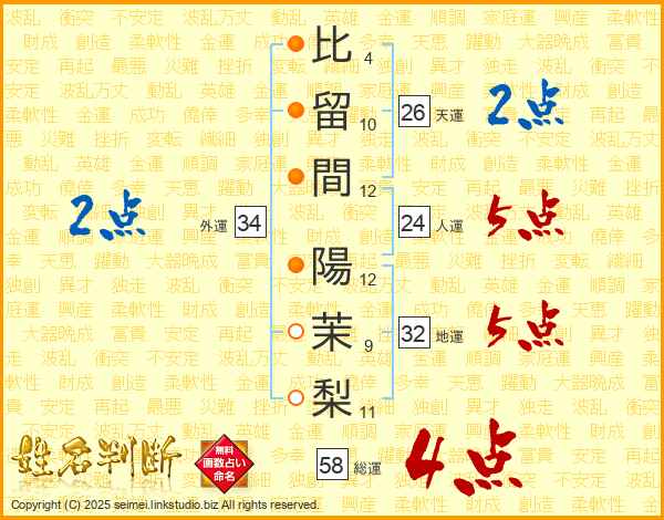 比留間陽茉梨さんの総運は58画の4点!