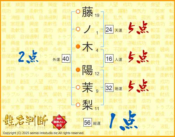 藤ノ木陽茉梨さんの天運は24画の5点!