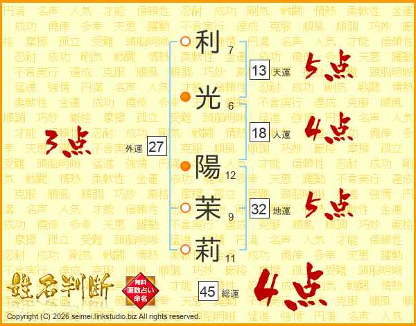 利光陽茉莉さんの総運は45画の4点!