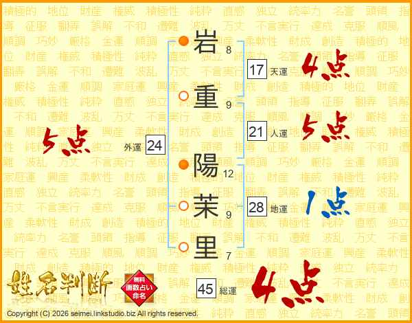 岩重陽茉里さんの総運は45画の4点!