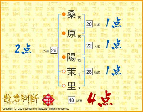 桑(10画)原(10画) 陽(12画)茉(9画)里(7画)