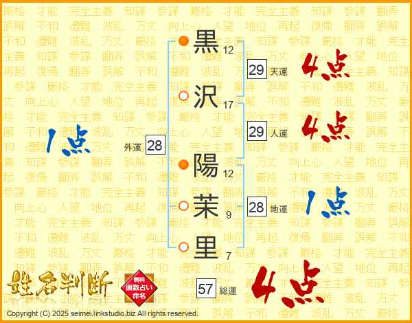 黒沢陽茉里さんの天運は29画の4点!
