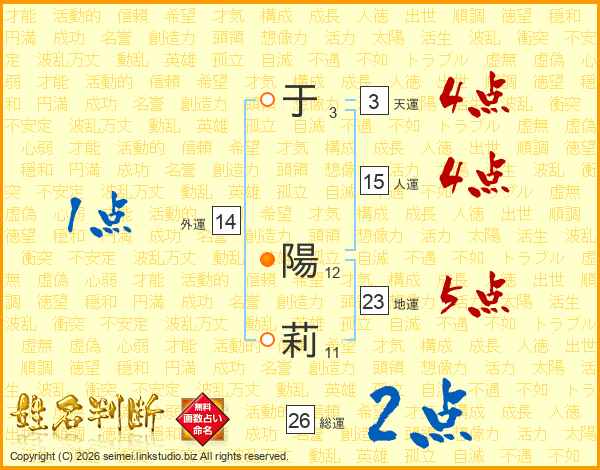 于陽莉さんの人運は15画の4点!