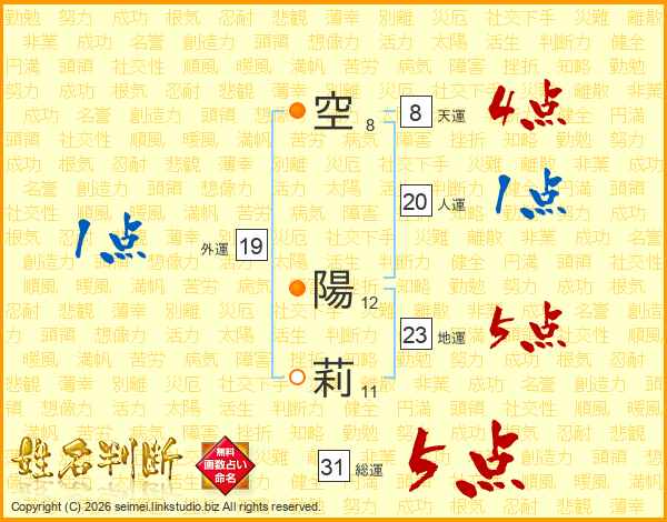 空(8画) 陽(12画)莉(11画)
