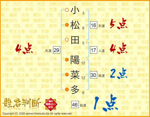 小松田陽菜多さんの地運は30画の2点!