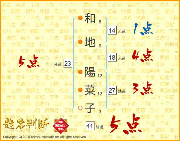 和(8画)地(6画) 陽(12画)菜(12画)子(3画)