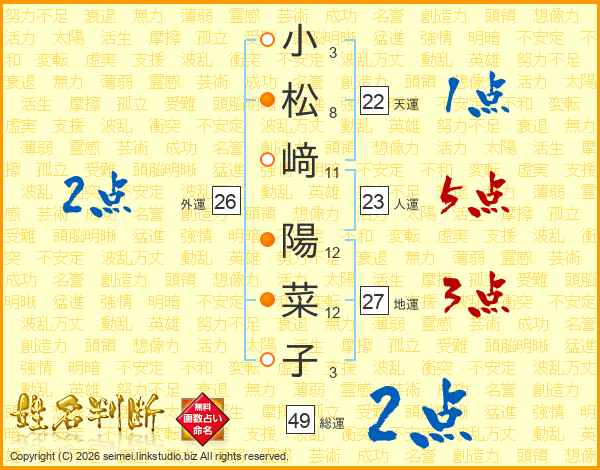 小松﨑陽菜子さんの総運は49画の2点!