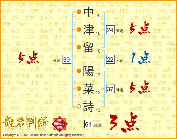 中津留陽菜詩さんの総運は61画の3点!