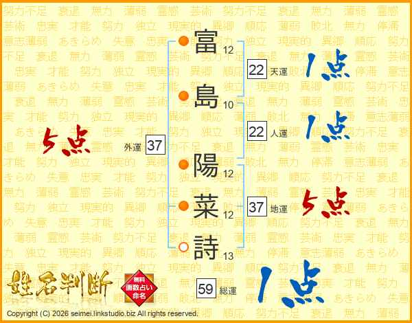 富(12画)島(10画) 陽(12画)菜(12画)詩(13画)
