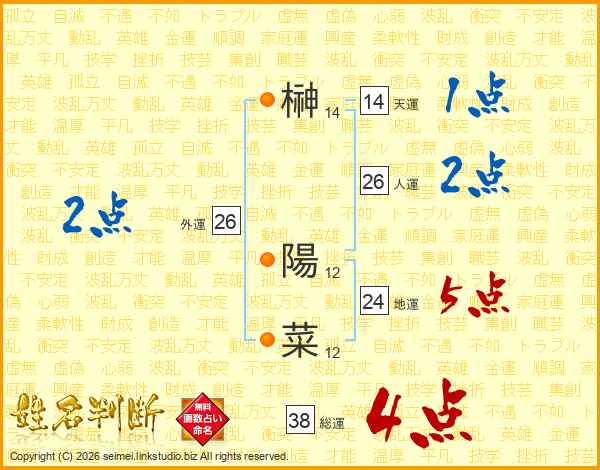 榊陽菜さんの総運は38画の4点!