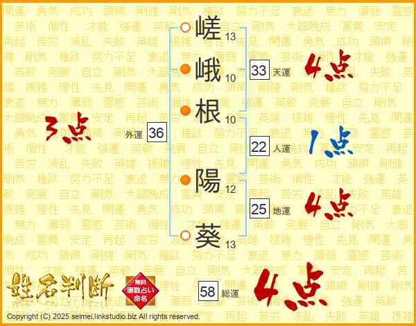 嵯(13画)峨(10画)根(10画) 陽(12画)葵(13画)