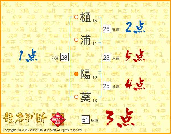 樋(15画)浦(11画) 陽(12画)葵(13画)