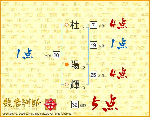 杜陽輝さんの総運は32画の5点!