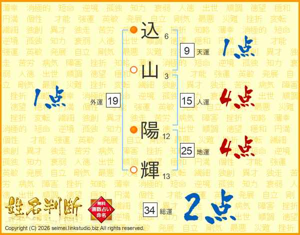 込山陽輝さんの地運は25画の4点!