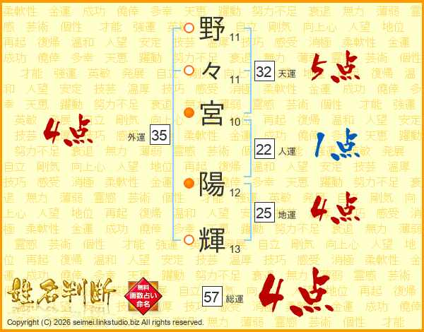 野々宮陽輝さんの総運は57画の4点!