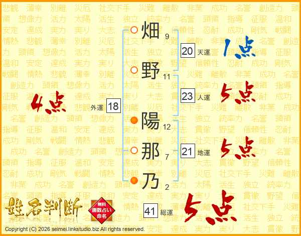 畑野陽那乃さんの外運は18画の4点!