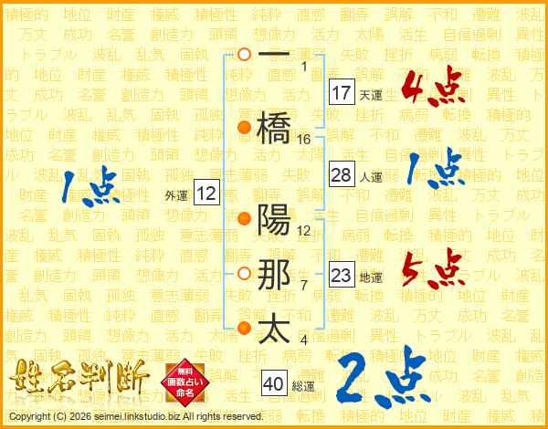 一橋陽那太さんの天運は17画の4点!